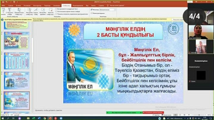 Мектебімізде тәрбие жұмысының «Ұлттық тәрбие» бағытындағы «Өнегелі бір сағат» жобасы аясында ZOOM платформасы арқылы «Біз Шәріпшілер» пікір – сайыс клубының ұйымдастыруымен «Мәңгілік елдің 7 мызғымас негізі» тақырыбында дебат сайысы өтті. Мақсаты: Оқушыларға «Қазақстан 2050» стратегиясының маңызы мен мақсатын түсіндіру арқылы «Мәңгілік Ел» идеясының маңызын түсіну, Отанын сүюге, бірлікке, ел тарихын білуге, еліміздің өркендеуіне үлес қосуға тәрбиелеу. Дебат барысында тақырыпқа сай «Мәңгілік Ел» идеясының жастарға арналған бағдарламаларының мақсаты мен міндеттерін түсіне отырып, тиімді және тиімсіз жақтарын қарастырып, өз пікірлерін ортаға салды.