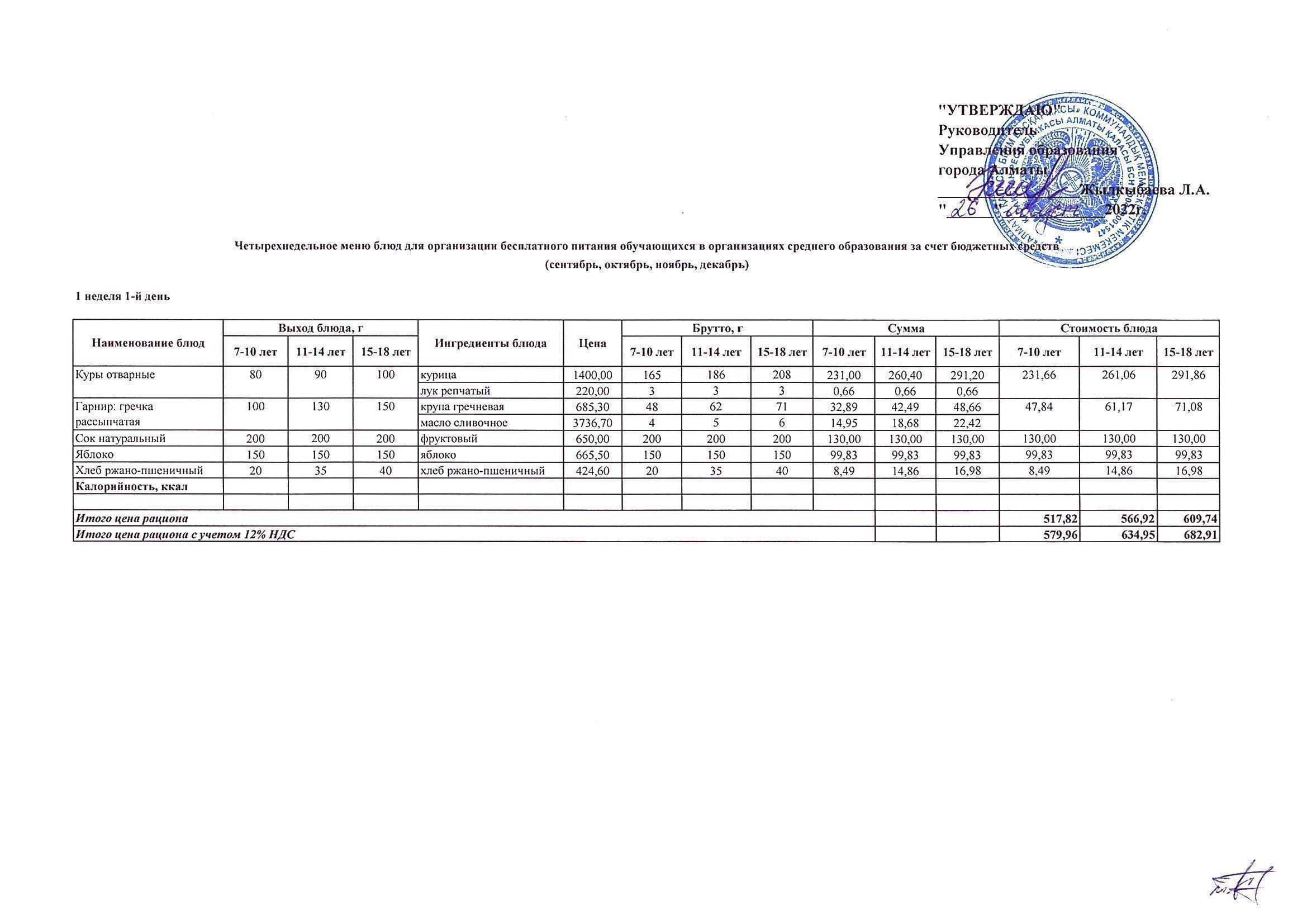 2022-2023 оқу жылында 1-4 сынып оқушыларының тегін тамақтануы
