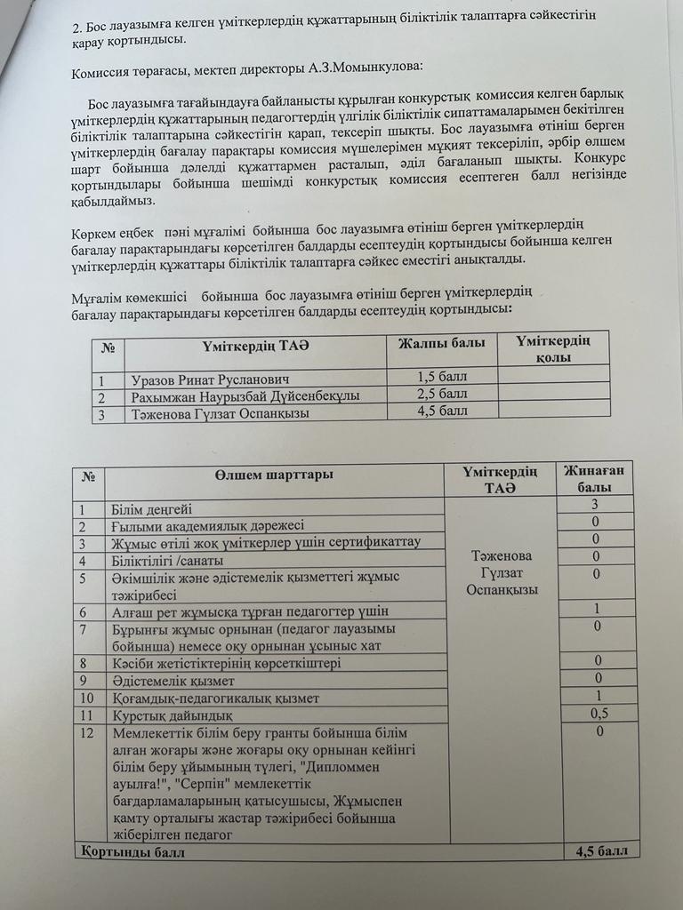 08 сентябрь 2023 0 1 2 3 4 5 Бос немесе уақытша бос педагог лауазымына үміткерлерді қабылдау бойынша өткізілген конкурстық комиссия отырысының хатамасы №17 Осы беттің QR-коды:QR-код этой страницы: