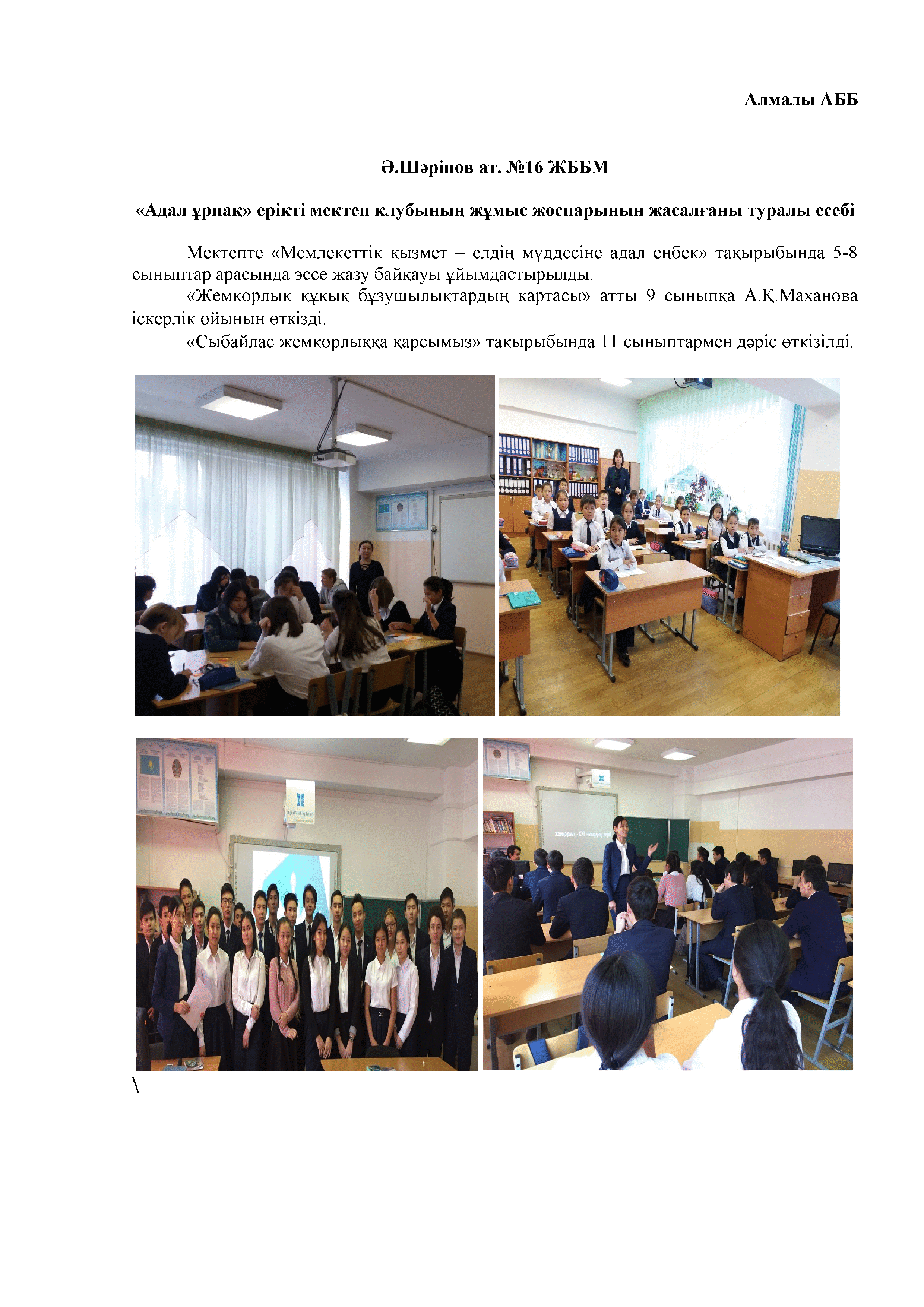 КГУ «Общеобразовательная школа №16 имени А.Шарипова»