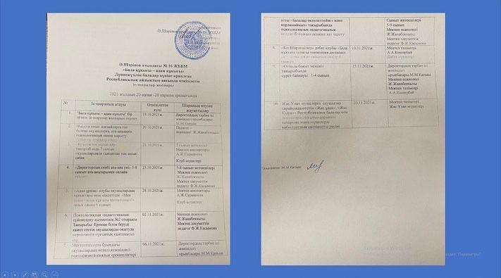 20 октябрь 2021 0 1 2 3 4 5 "Бала құқығы- адам құқығы" Дүниежүзілік балалар күні Ә.Шәріпов атындағы №16 ЖББМ КММ "Бала құқығы- адам құқығы" Дүниежүзілік балалар күніне арналған жұмыс жоспары. Осы беттің QR-коды:QR-код этой страницы: