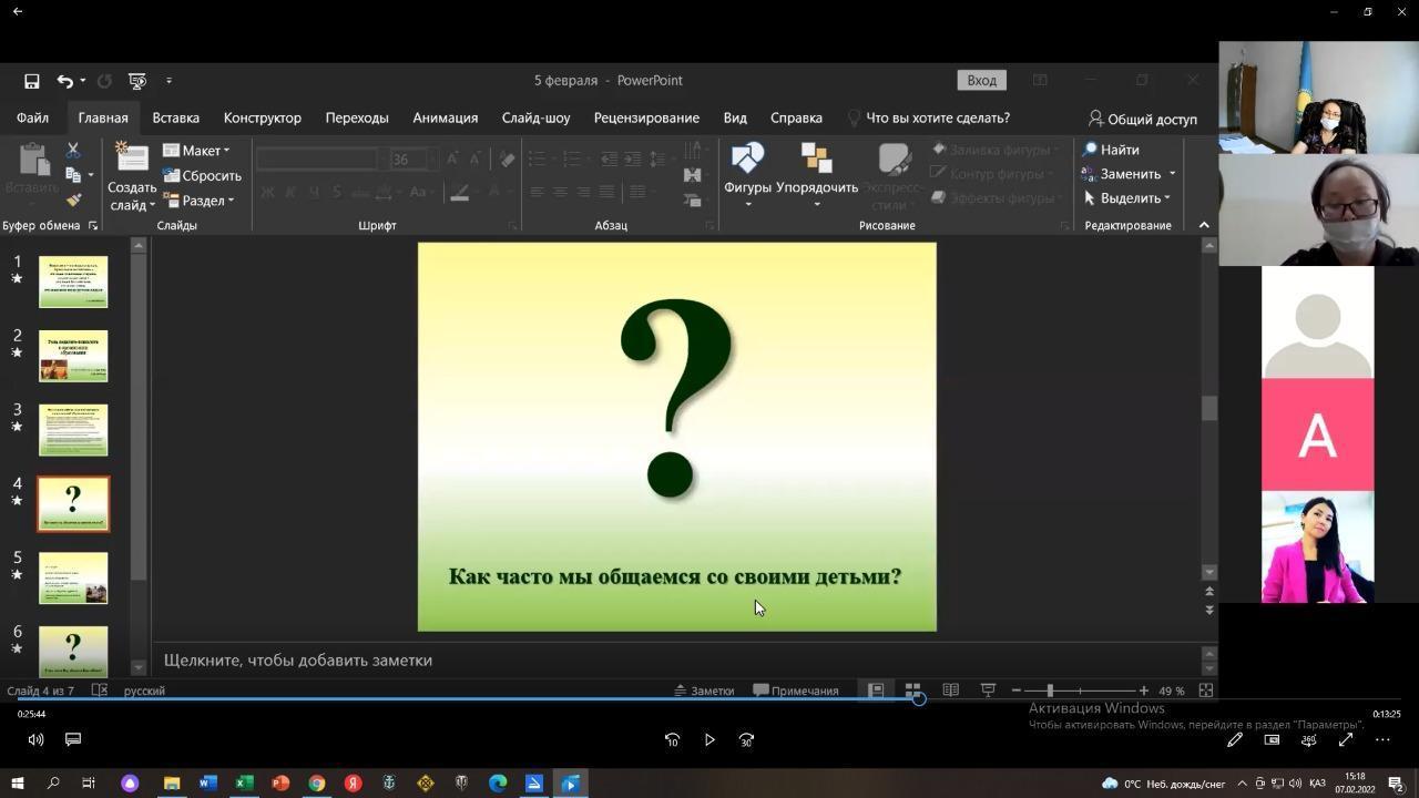 05 февраль 2022 0 1 2 3 4 5 «Директорская суббота – голос родителей» тема: «Как помочь ребенку пережить трудную жизненую ситуацию» Осы беттің QR-коды:QR-код этой страницы: