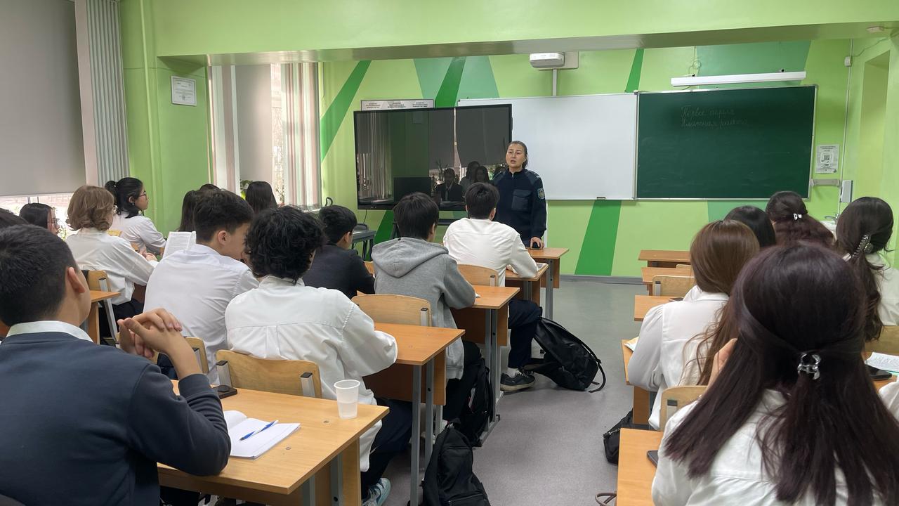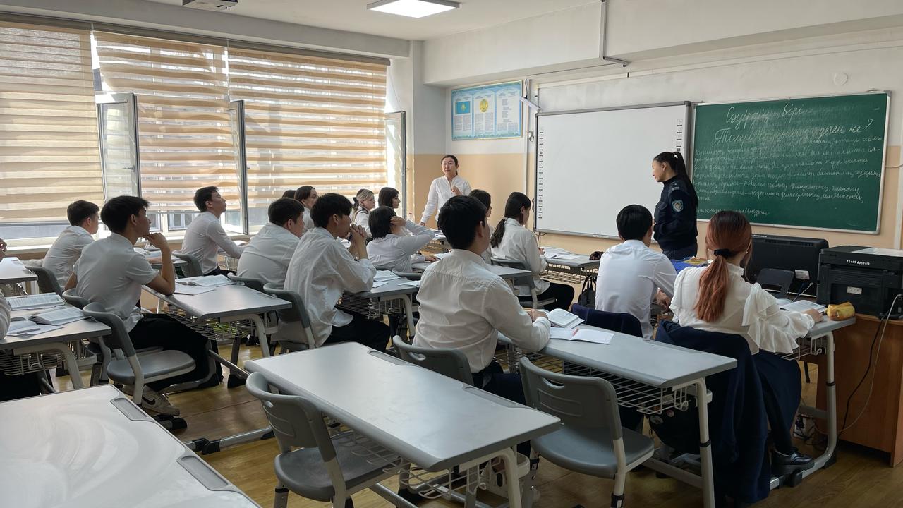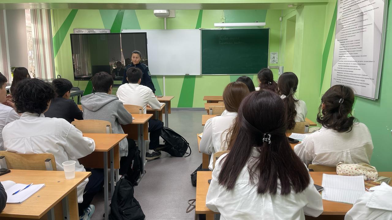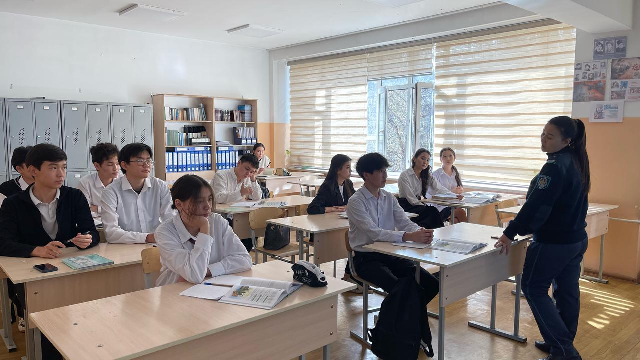 Кәмелет жасқа толмаған жасөспірімдер арасындағы құқық бұзушылықтың алдын алу мақсатында сәуір айының 1 күні Алмалы ауданы ПБ полиция майоры Симова М.О қатысуымен 10-11 сынып оқушылары арасында «мопедті тіркеусіз және жүргізуші куәлігінсіз басқаруға тыйым салынады» тақырыбында кездесу ұйымдастырылды.