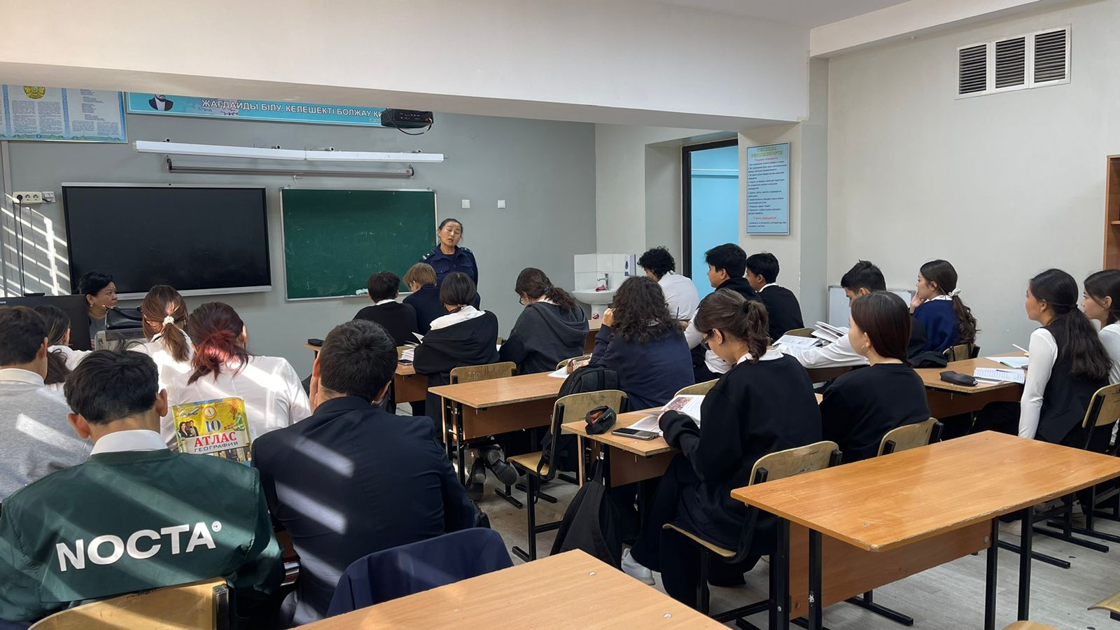 16.09.2025ж. Әди Шәріпов ат.№16 мектеп-гимназиясында жасөспірімдер арасында құқықбұзушылықты болдырмау, оның алдын алу бойынша Алмалы аудандық ПБ ЖПҚБ ЮПБ аға инспектор полиция майоры Симова Меруерт Оңласынқызының қатысуымен «Жасөспірімдер арасындағы құқық бұзушылық» тақырыбында профилактикалық кездесу ұйымдастырылды. 7 «А», 8 «В», 10 «Ә», 9 «Б», 9 «Г» сынып оқушылары қатысқан кездесуде әкімшілік және қылмыстық жауапкершілік туралы: ұрлық, қорлық, зорлық, зомбылық, ерте жастан еңбекке тартылу, жәбірлеу, жәбірлену, балағат сөздер айту, түнгі мезгілде көшеде заңды өкілдерсіз жүру, мектеп ережелерін орындау, тыйым салынған сайттарға кірмеу, темекі, алкоголь бұйымдарын қолданбау, өрт, су, жол, табиғи апаттар кезіндегі қауіпсіздік туралы айтылды. Оқушылар өздерін қызықтырған сұрақтарын қойып, тұшымды жауаптарын алды. Мектеп инспекторымен кездесу қажеттілігіне қарай күн сайын жүргізіліп отырады.