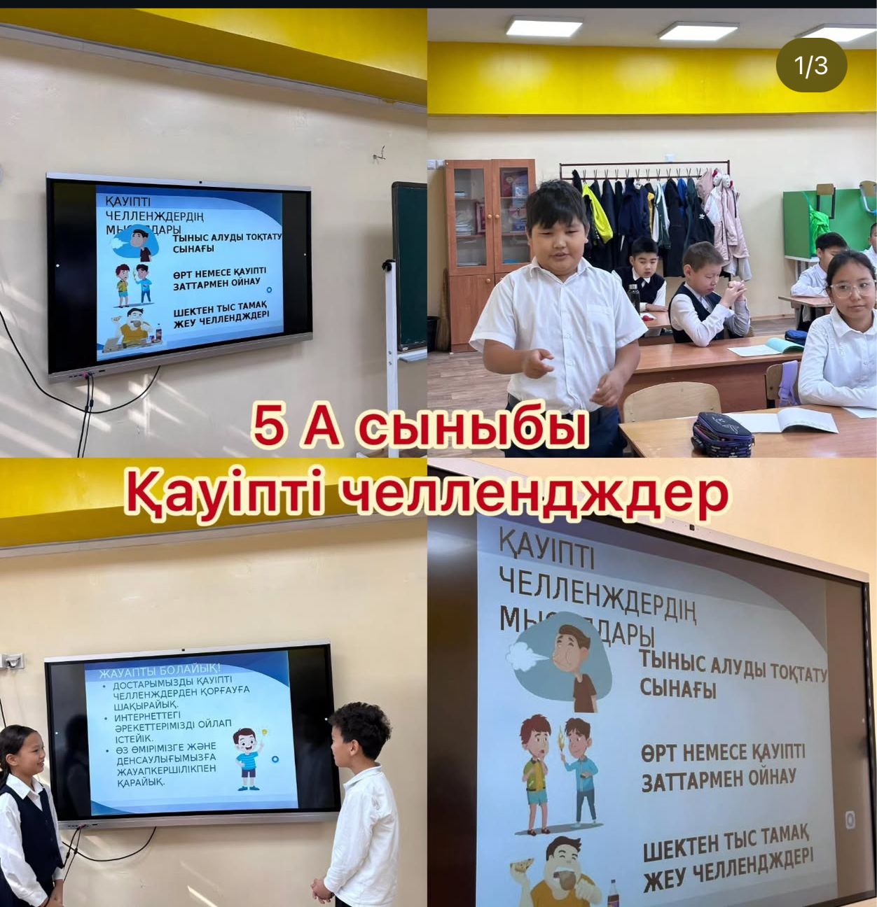 06.10.2025ж. Жеке қауіпсіздік сабақтарында - «Дүкендерде, супермаркеттерде өзін-өзі ұстау әдебі», «Фейк ақпараттардың құрбаны болмау», «Интернет әлеміндегі қауіпті әуесқойлық», «Шұғыл жағдайлардағы әрекет, сабыр сақтау» секілді тақырыптар өткізілді. Мектеп оқушыларына жеке қауіпсіздіктің маңызы, жеке құқықтары мен міндеттері туралы айтылды.