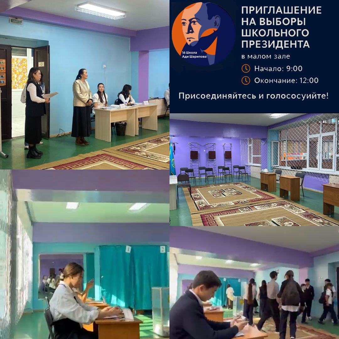 На основании протокола избирательной комиссии школы №16 было решено объявить президентом школы ученицу 9 Б класса Хожамуратова Айдана набравшей самый высокий балл.