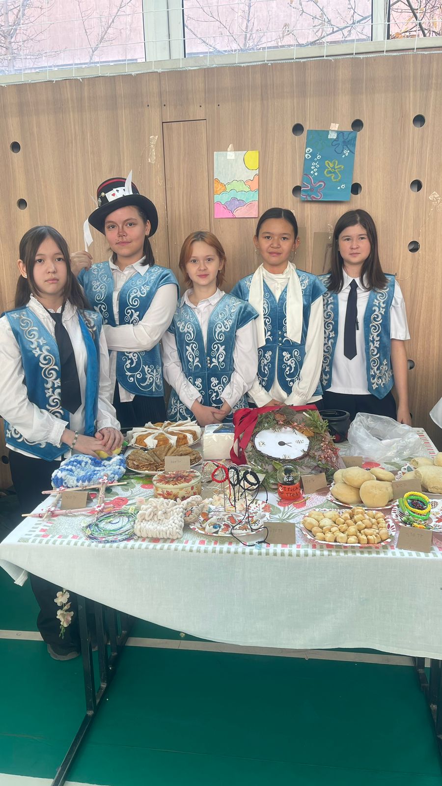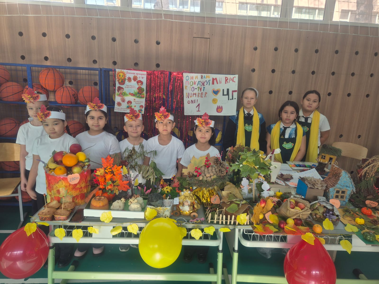 Жәрмеңке барысында оқушылар ата-аналарымен бірлесіп, күзгі егін өнімдері мен табиғи материалдарды пайдалана отырып жасаған түрлі қолөнер бұйымдарын ұсынды.