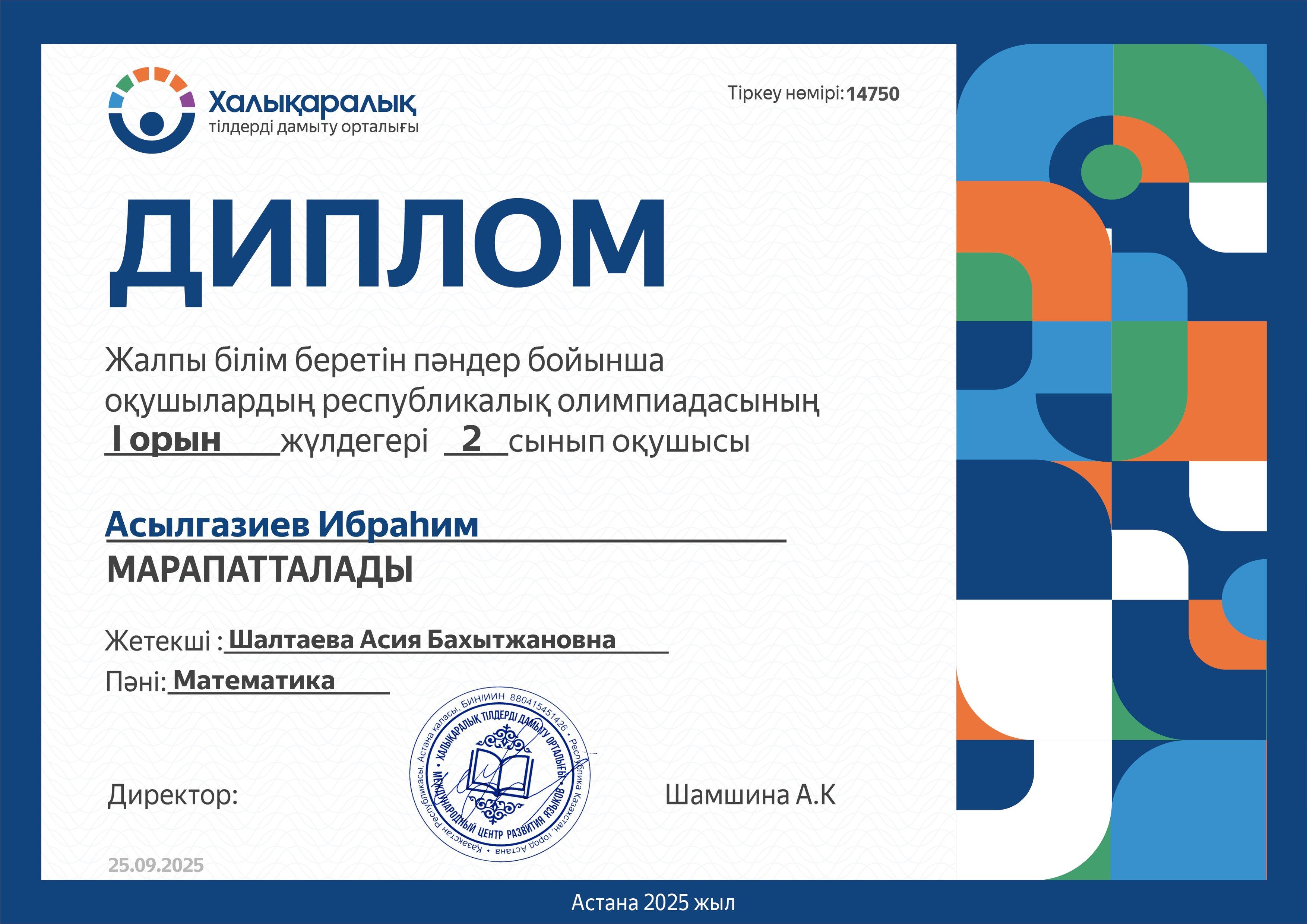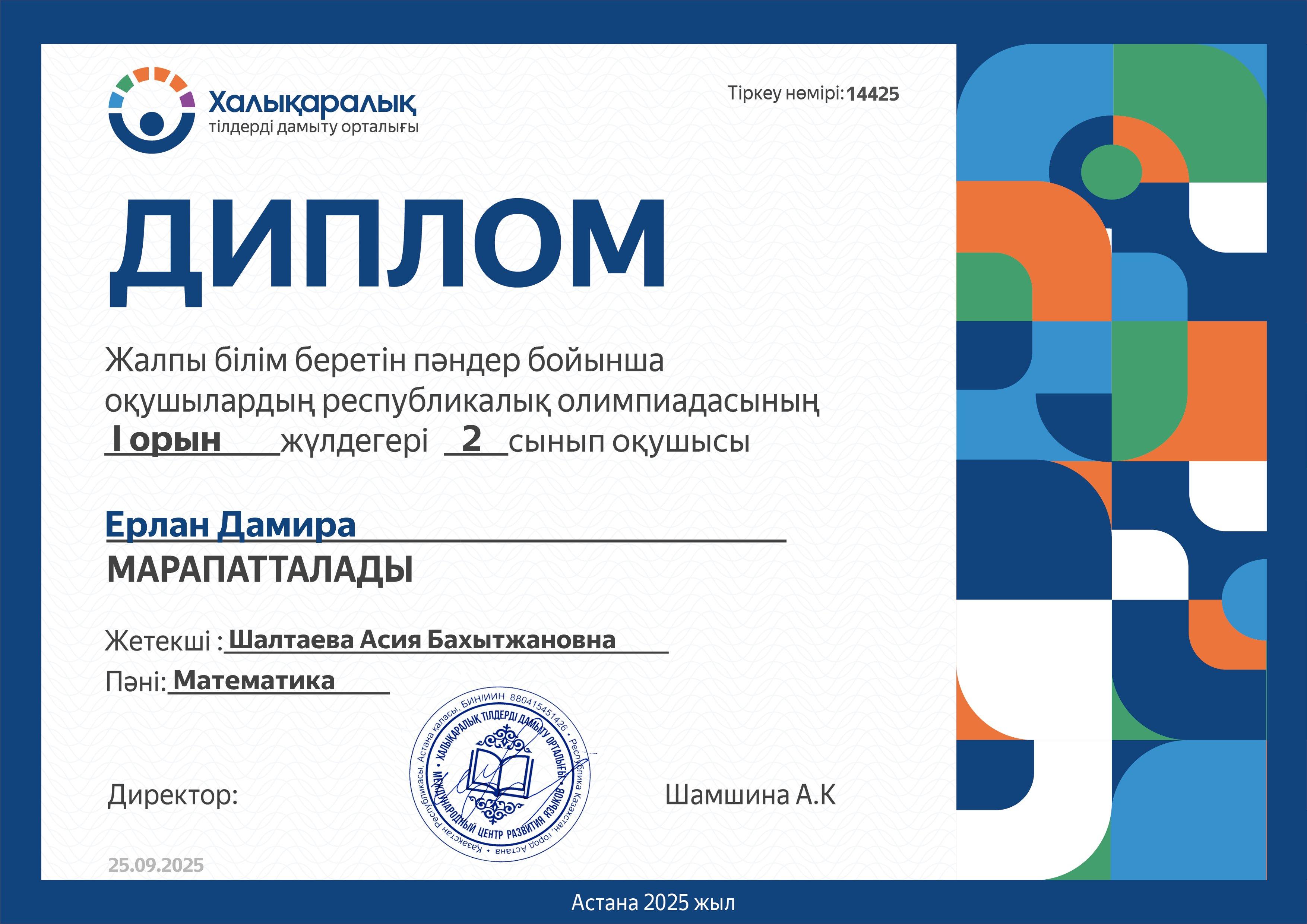 13 октябрь 2025 0 1 2 3 4 5 Жалпы білім беретін пәндер бойынша республикалық олимпиаданың нәтижелері Осы беттің QR-коды:QR-код этой страницы: