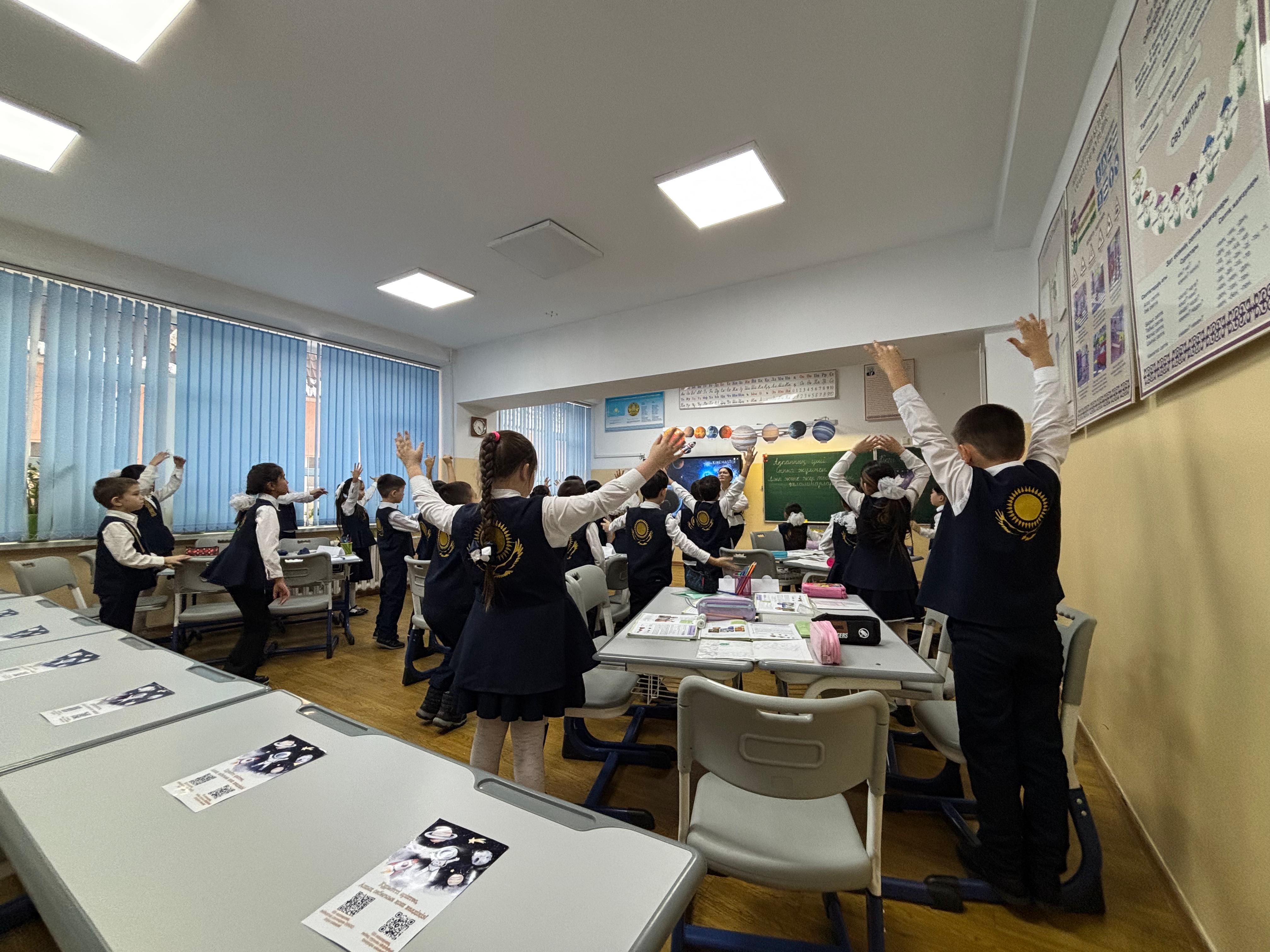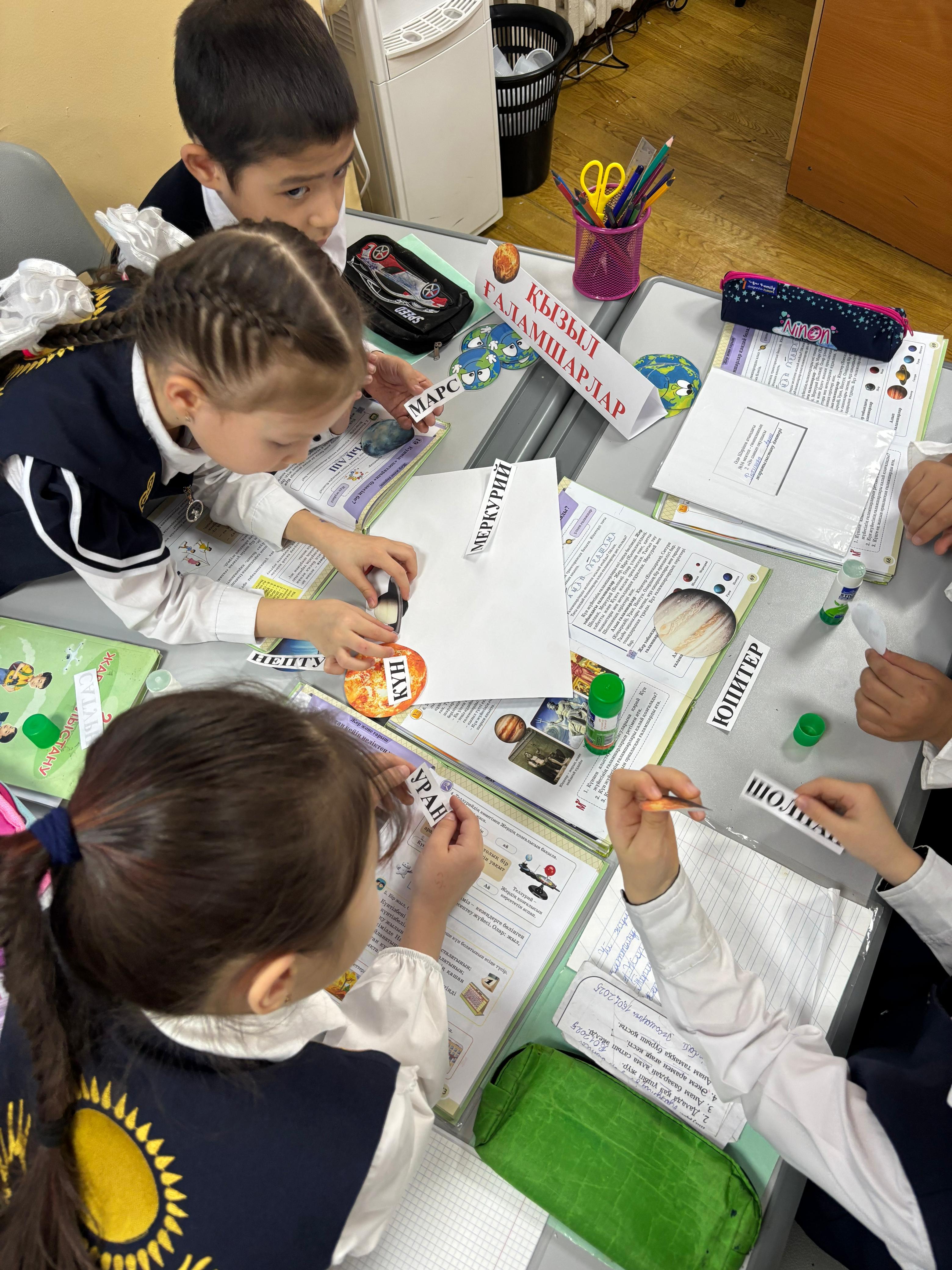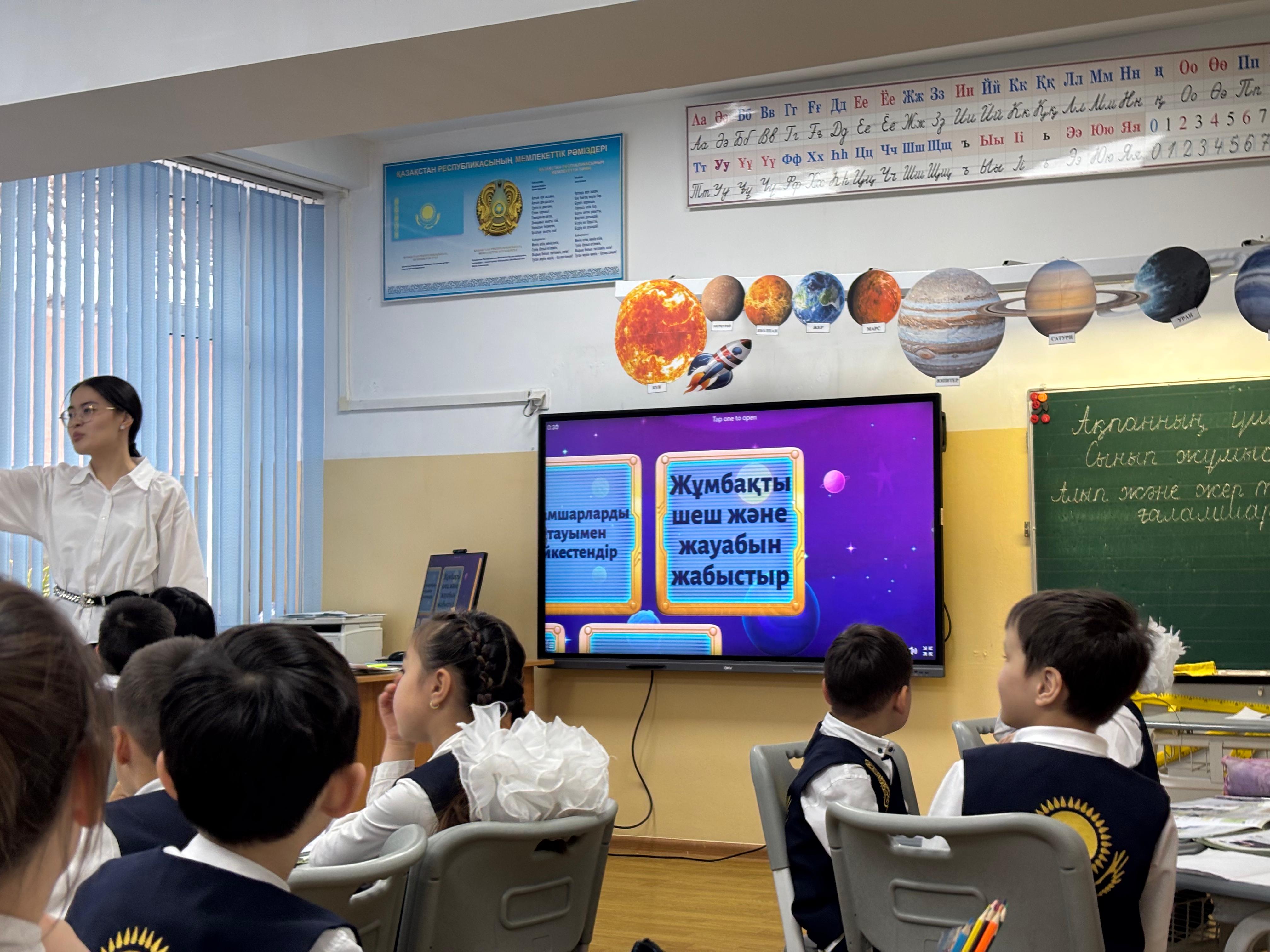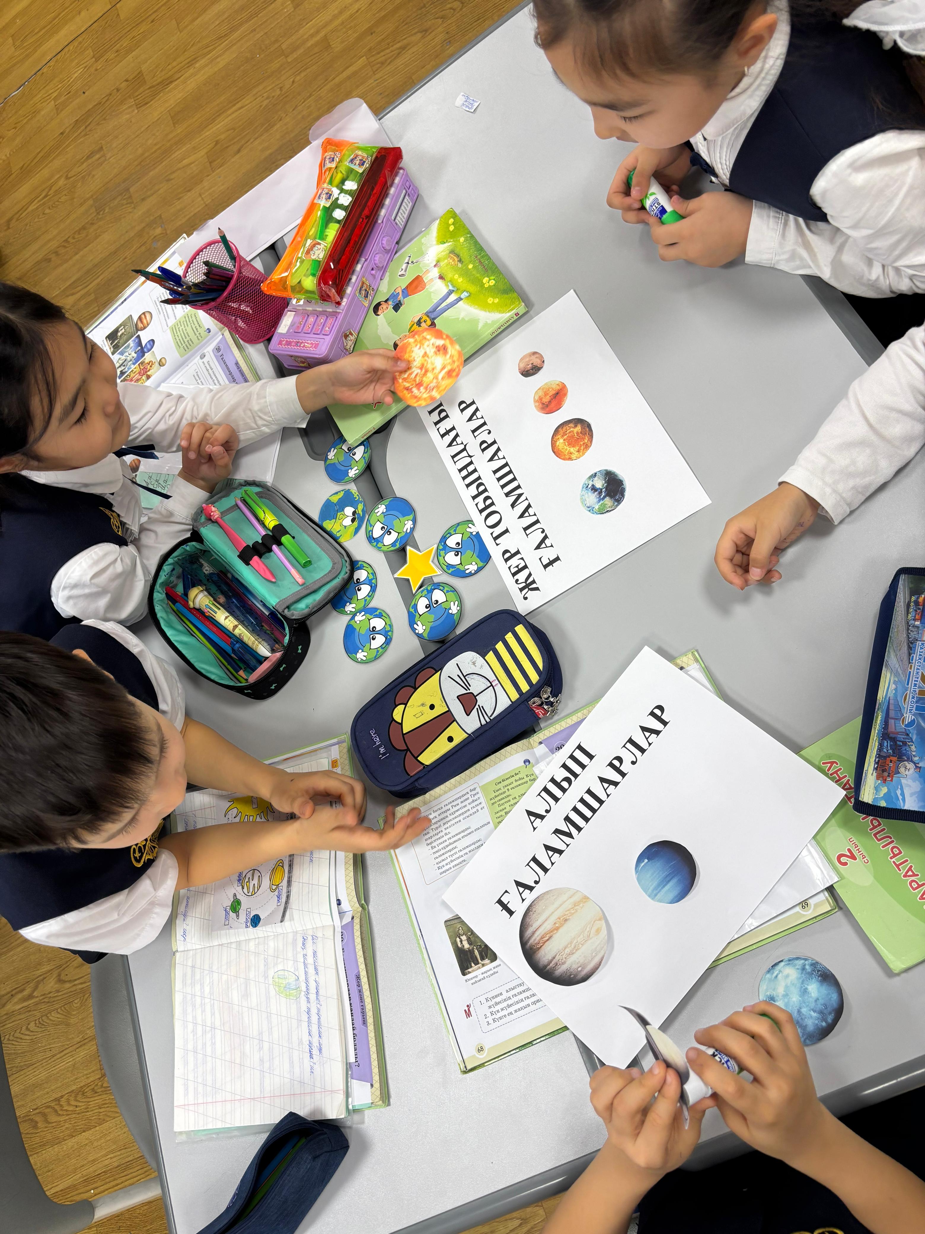 Жаратылыстану пәнінен жас маман Келгенбай А.Е. 2"Ә" сыныбымен "Ғаламшарлар қандай болады?" атты тақырыбында өткізілген