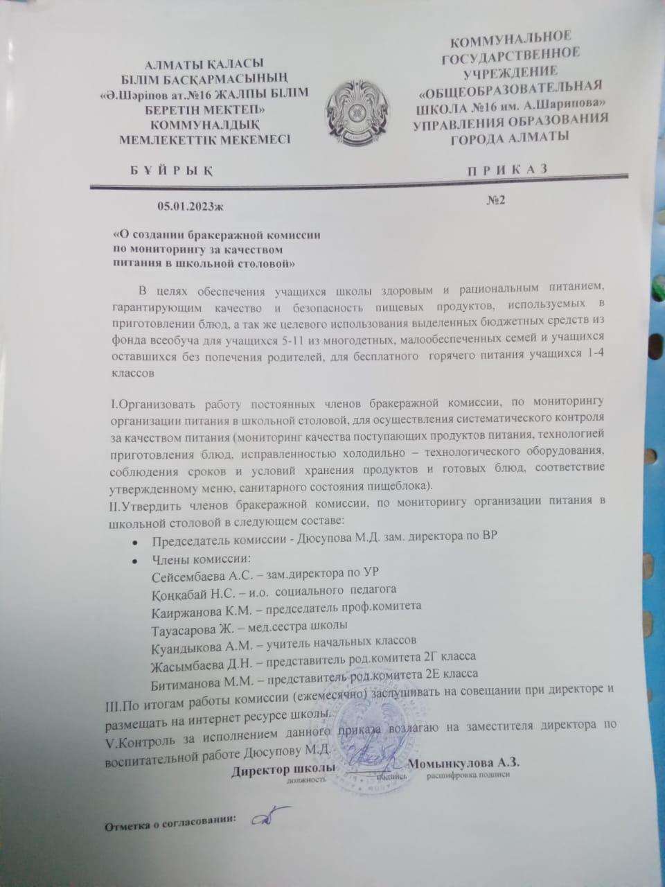 05 январь 2023 0 1 2 3 4 5 Приказ о создании бракеражной комиссии по мониторингу за качеством питания в школьной столовой Осы беттің QR-коды:QR-код этой страницы: