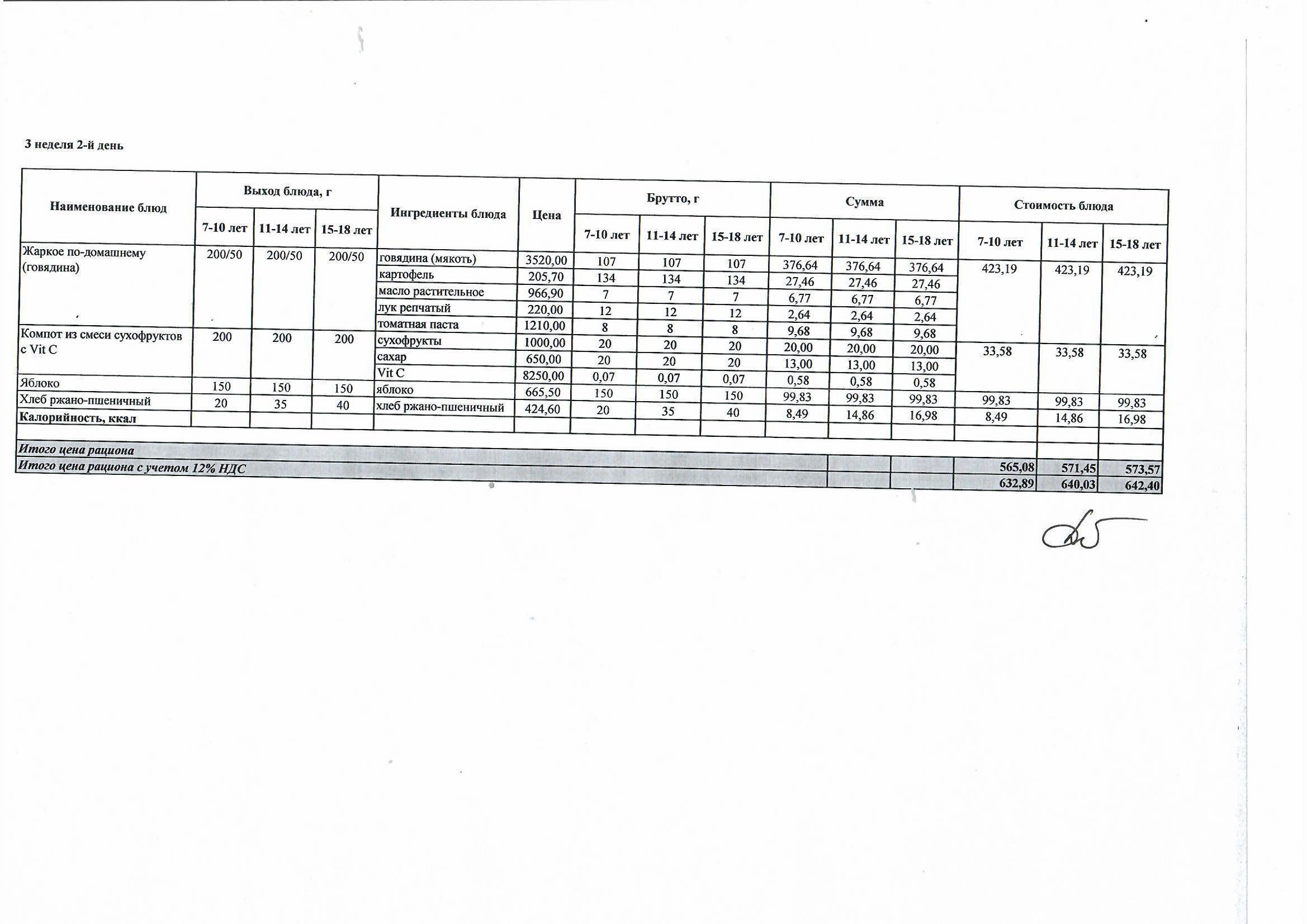 меню 1 неделя 4 день