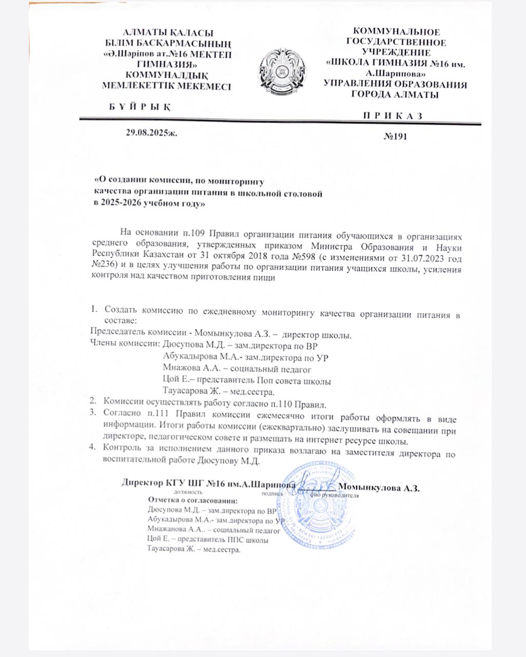 29 август 2025 приказ о создании комиссии по мониторингу качества организации питания в школьной столовой на 2025-2026 учебный год Осы беттің QR-коды:QR-код этой страницы: